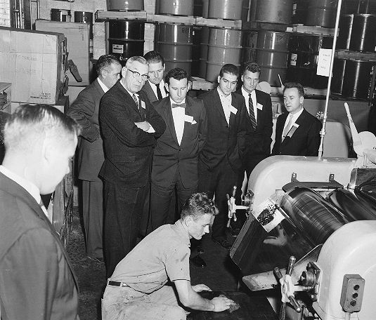 This photo was taken when my Dad's company was looking to buy a new press. He's in the back row there, looking right at the camera. Click here if you'd like to see him up close.