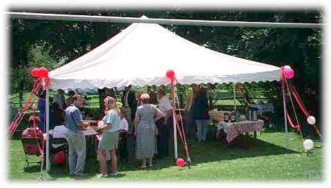 Here are the guests assembled at the tent, and no doubt wondering where the hell the booze is at! |